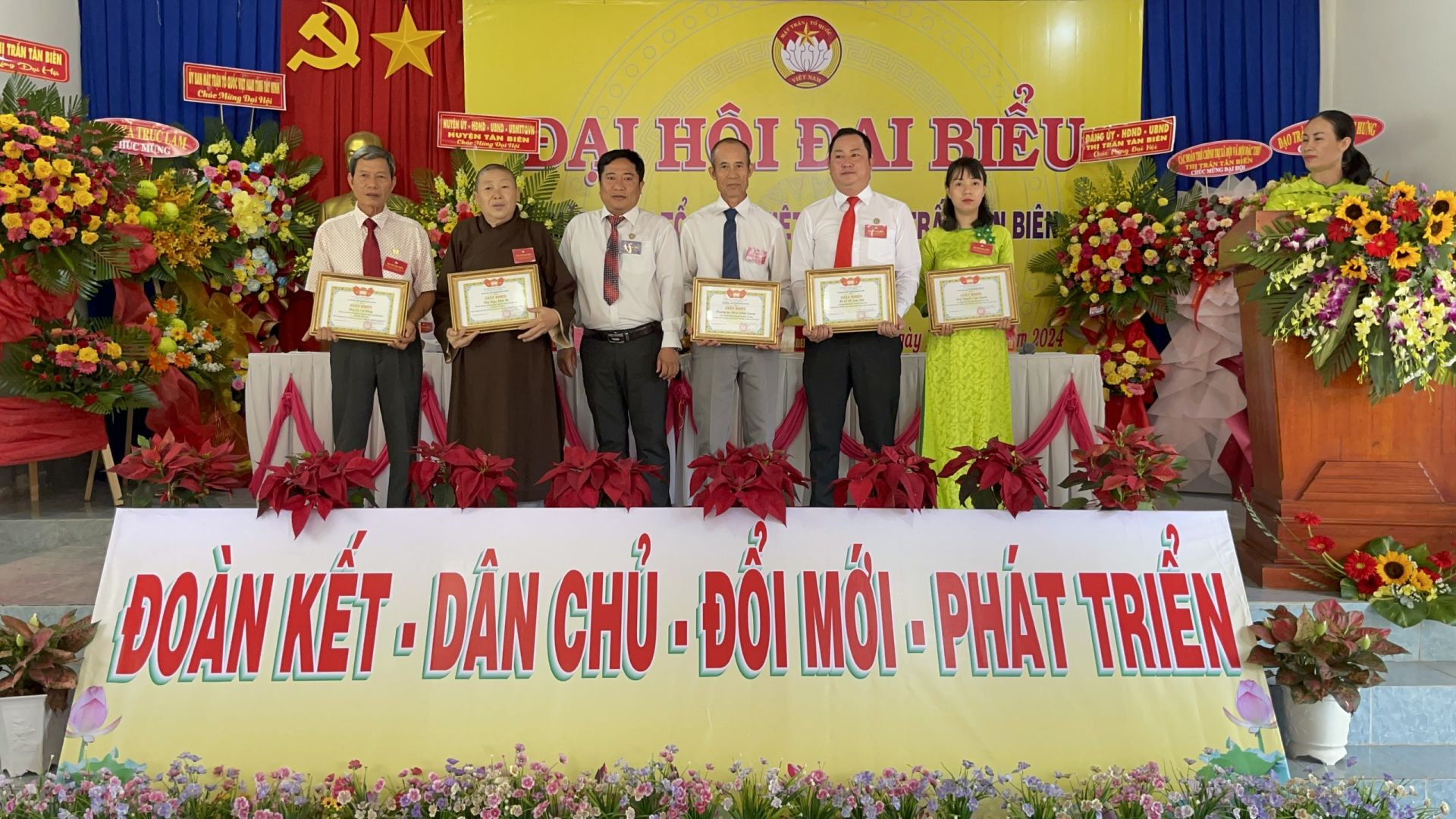 Dịp này, UBMTTQ Việt Nam thị trấn Tân Biên khen thưởng cho 5 cá nhân và 2 tập thể có thành tích xuất sắc trong công tác Mặt trận nhiệm kỳ 2019 – 2024.