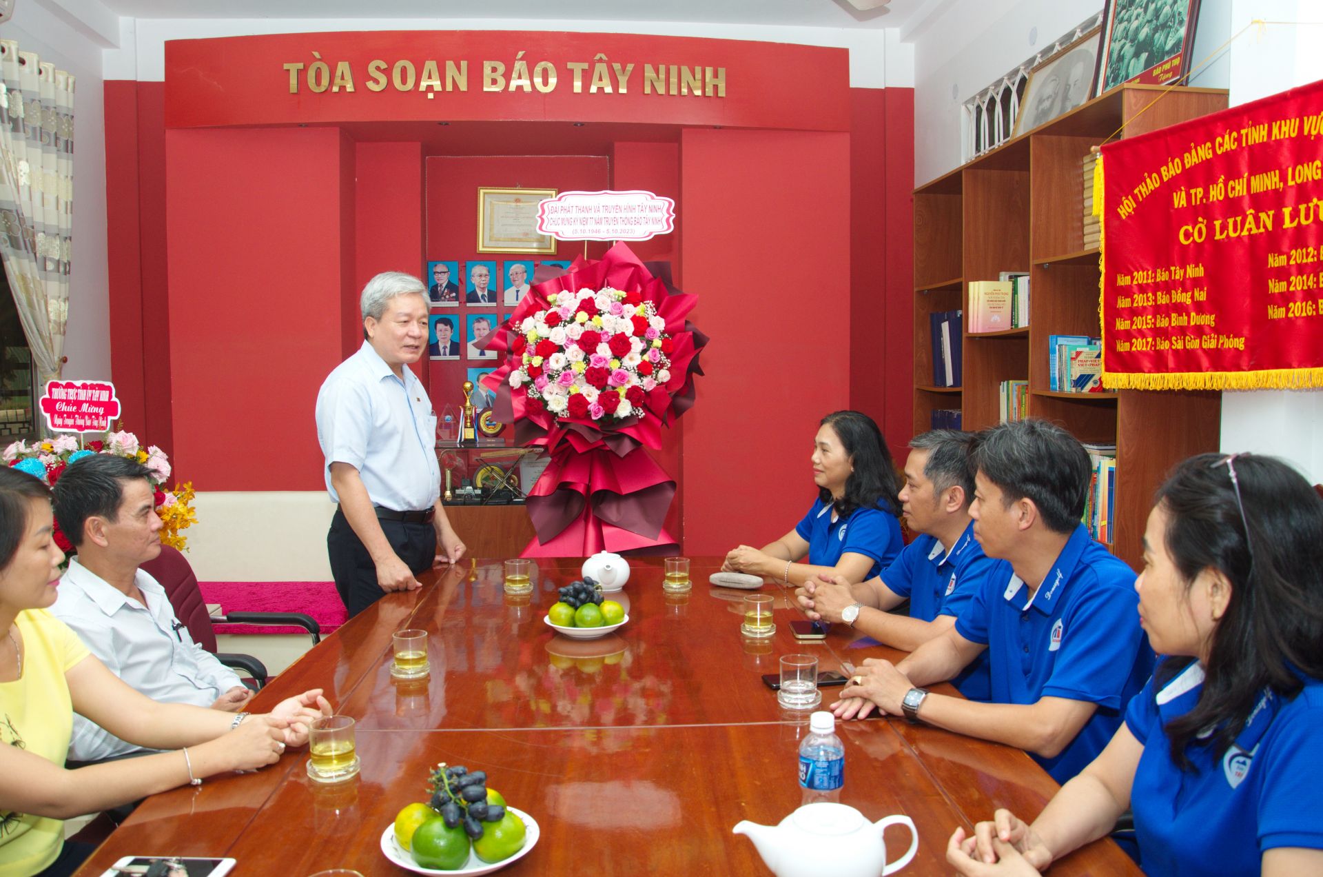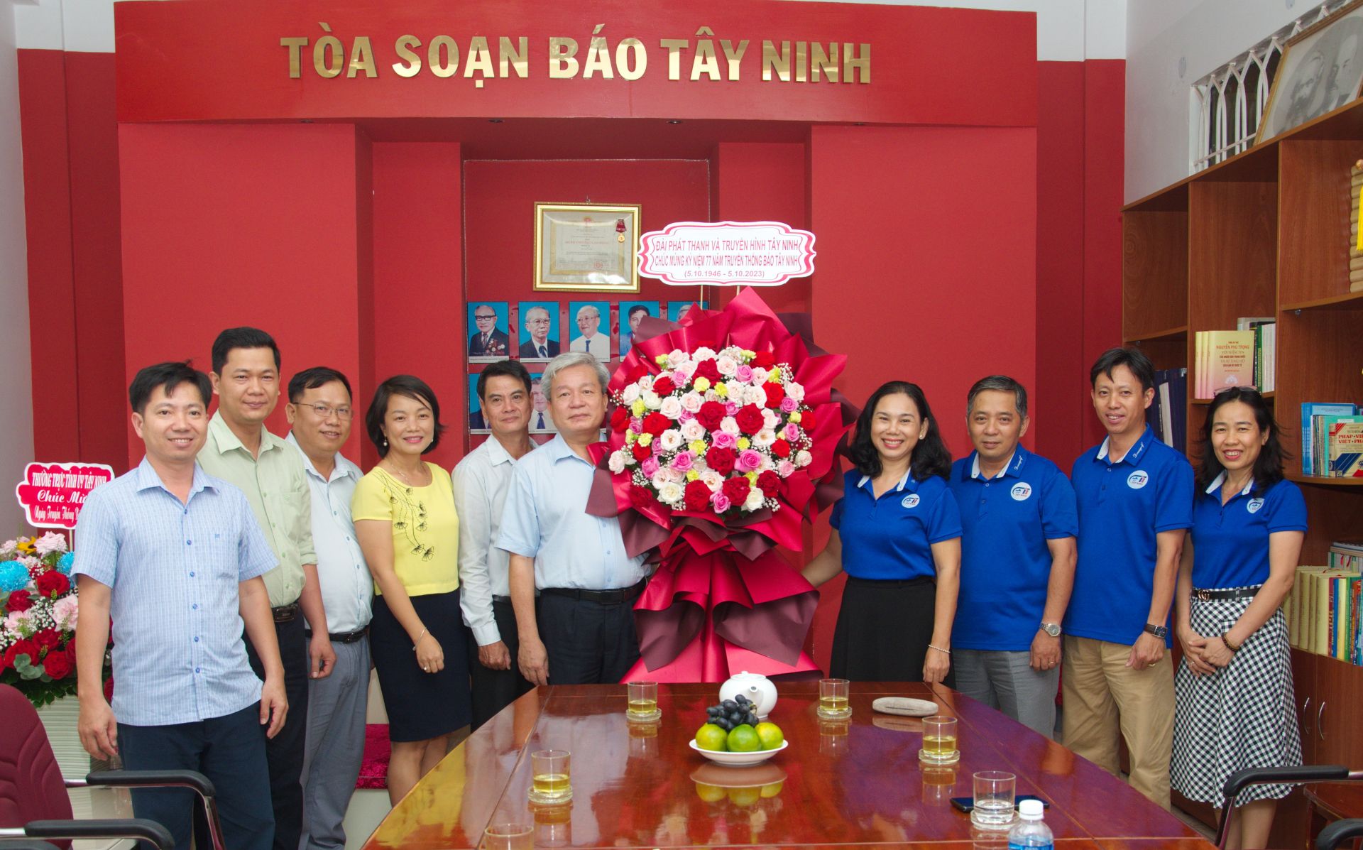 Chiều 5.10, Đảng ủy, Ban Giám đốc Đài PT-TH Tây Ninh do ông Vũ Xuân Trường- Bí thư Đảng ủy, Giám đốc Đài làm Trưởng đoàn cùng lãnh đạo các phòng chuyên môn đến thăm, chúc mừng Báo Tây Ninh nhân kỷ niệm 77 năm Ngày truyền thống (5.10.1946-5.10.2023).