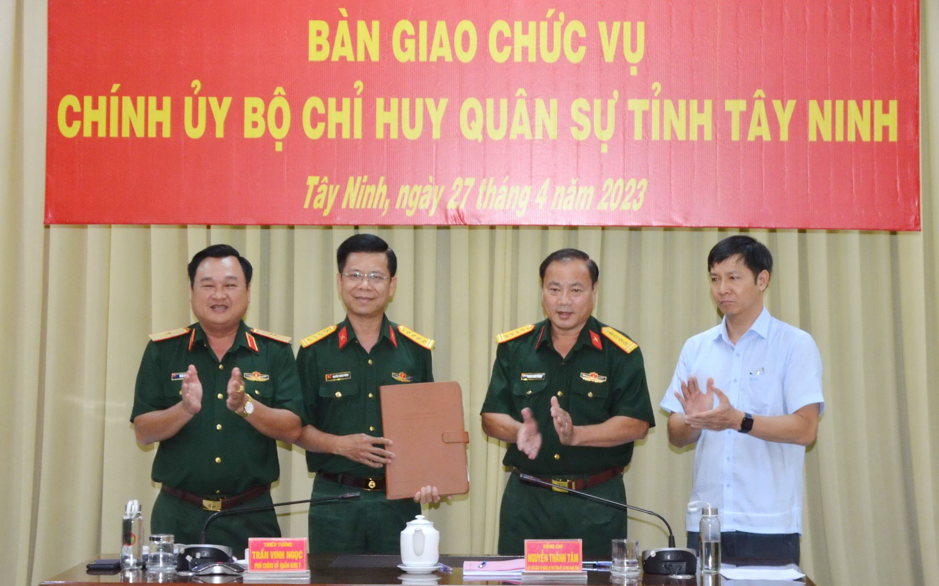 Bí thư Tỉnh ủy Tây Ninh và thủ trưởng Bộ Tư lệnh Quân khu 7 chứng kiến lễ bàn giao.