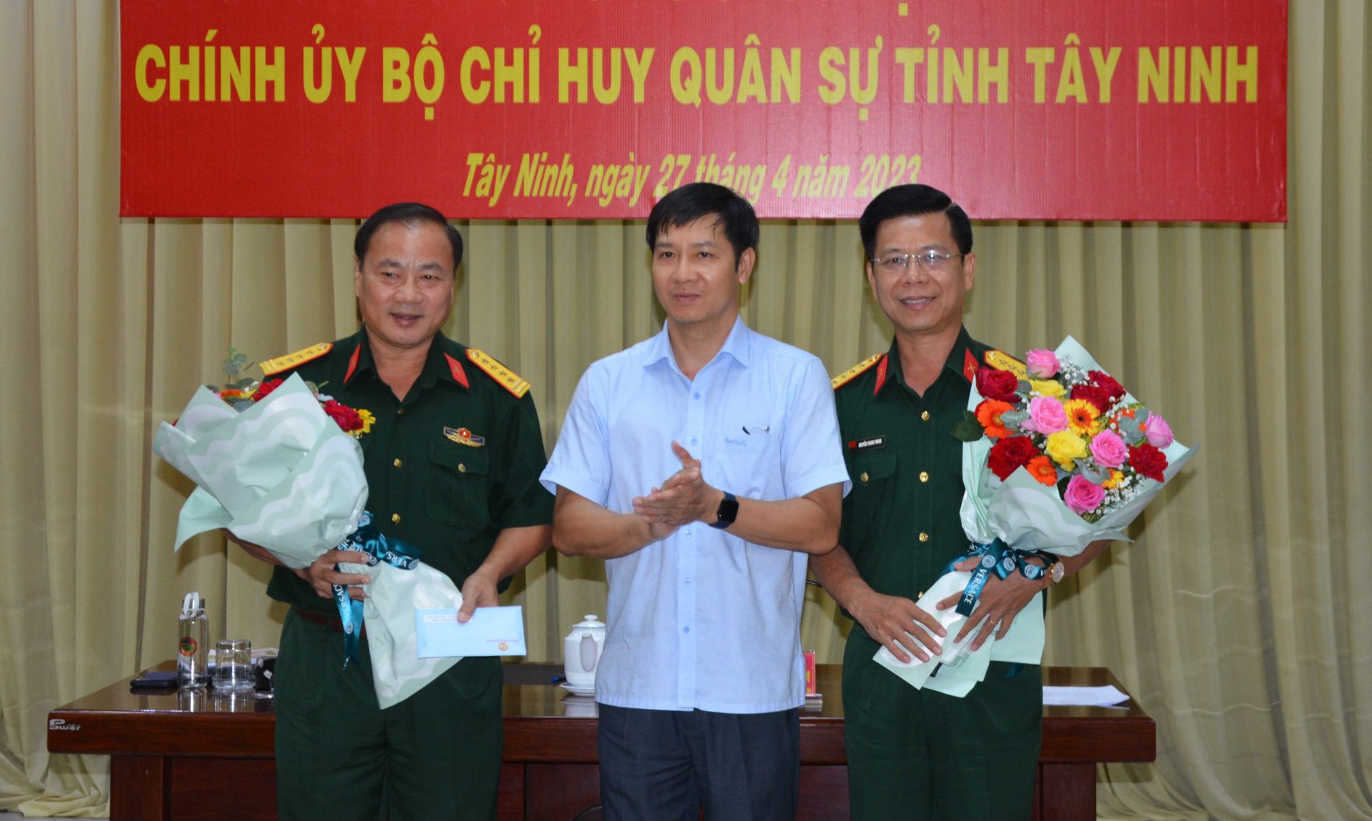 Chiều 27.4, Đảng ủy, Bộ CHQS tỉnh tổ chức hội nghị bàn giao chức vụ Chính ủy Bộ CHQS tỉnh Tây Ninh.