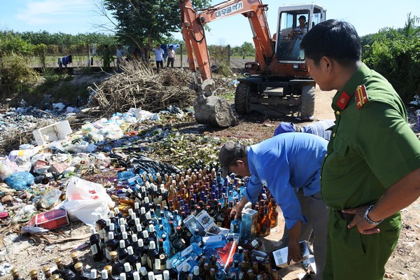 | Tiêu huỷ rượu nhập lậu, rượu không rõ nguồn gốc xuất xứ ở Bến Cầu- Ảnh minh hoạ. |