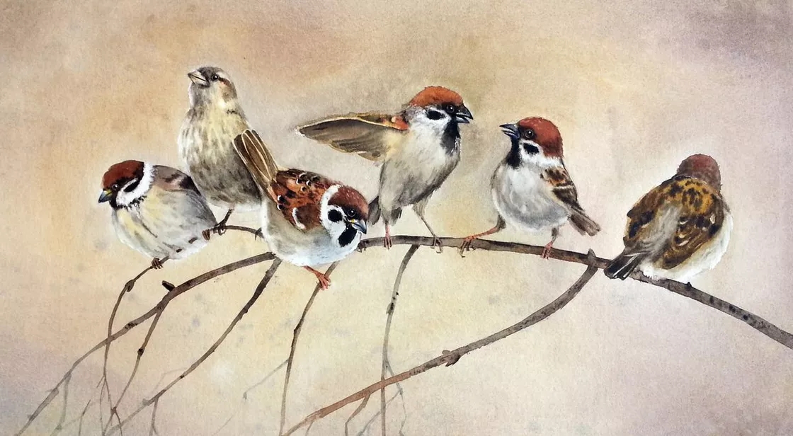 - Chuyện là thế này cậu giáo ạ! Cuối mùa mưa năm ngoái, bỗng đâu có trận mưa rào, lại trái khoáy đổ thêm rét nữa. Thời tiết như vậy con người ta có đủ cơm ăn áo mặc còn khổ nữa là giống chim. Tôi tự nhủ như vậy rồi để ý quan sát đàn chim sẻ làm tổ trong vườn, trong các hốc kèo nhà tôi, thấy chúng rét mướt, ướt át cứ đứng chụm vào nhau trên mấy cành cây chịu mưa mà kêu líu ríu, con già, con nhỏ đều một bộ dạng thảm hại lắm. Tôi nghĩ chúng rét thì đúng rồi. Còn đói nữa thì là cái chắc. Giông gió suốt ngày thế này kiếm ăn làm sao được. Nghĩ thế, tôi lấy nắm gạo len lén rắc dưới gốc xoài rồi ngồi rình xem chúng động tĩnh thế nào. Ngày hôm đầu chúng không để ý. Trưa hôm sau mưa gió càng già, nghe chừng đói quá, một vài con dè dặt sà xuống mổ mổ thăm chừng. Thấy bình an, chúng kéo xuống cả đàn mổ một lúc hết sạch nắm gạo tôi vừa thảy ra lúc sáng. Từ bấy đến giờ, ngày nào tôi cũng cho chúng một vài nắm gạo. Nghĩ cũng là một cách bố thí chúng sinh. Và gần năm nay đàn chim sẻ chẳng đi đâu, chúng sinh sản ngay trong vườn, quen tôi như chim nhà vậy. Trưa qua cậu giáo sang chơi, gặp lúc mưa gió tôi biết chúng đói, cho thêm ít gạo, chúng đang ăn. Sợ bị đánh động chúng bỏ đi thì tội nghiệp nên tôi có cử chỉ không lịch sự, mong cậu giáo bỏ qua cho.