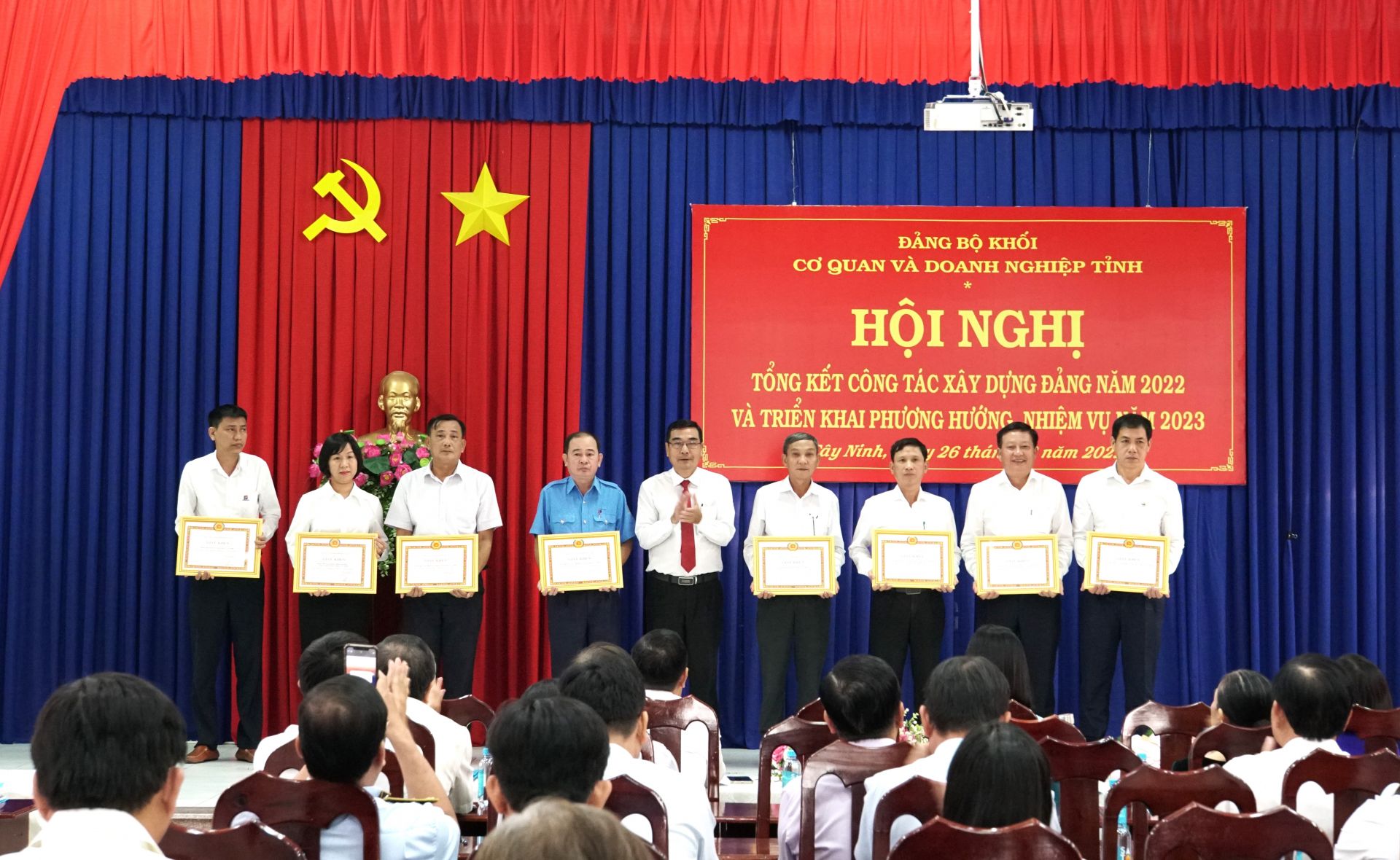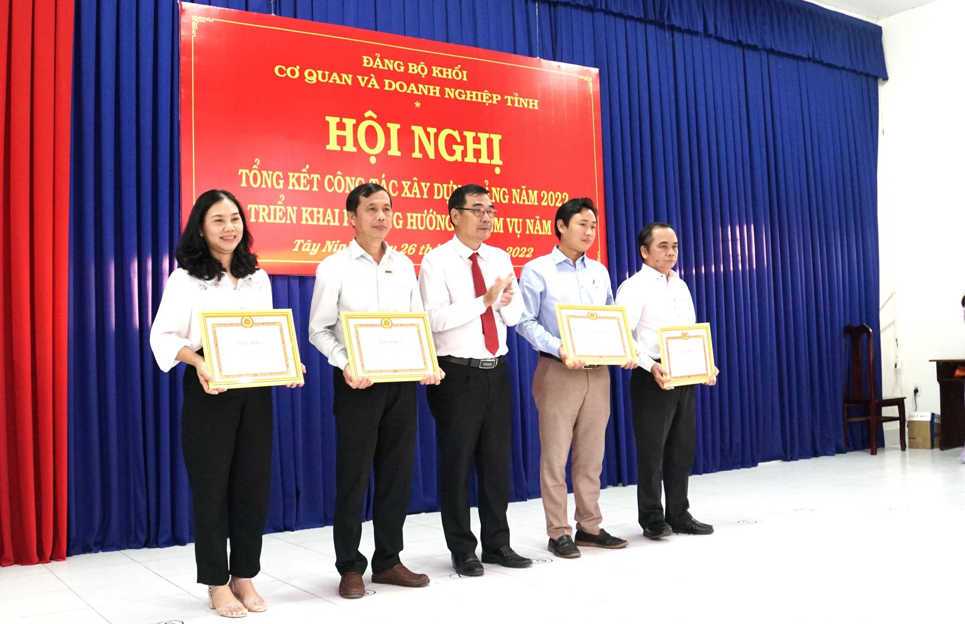 5 đảng viên thuộc Đảng bộ Khối được tặng Kỷ niệm chương Vì sự nghiệp xây dựng Đảng trong doanh nghiệp; Đảng uỷ khối CQ&DN tỉnh khen thưởng các tổ chức cơ sở đảng đạt thành tích xuất sắc trong công tác xây dựng Đảng năm 2022.