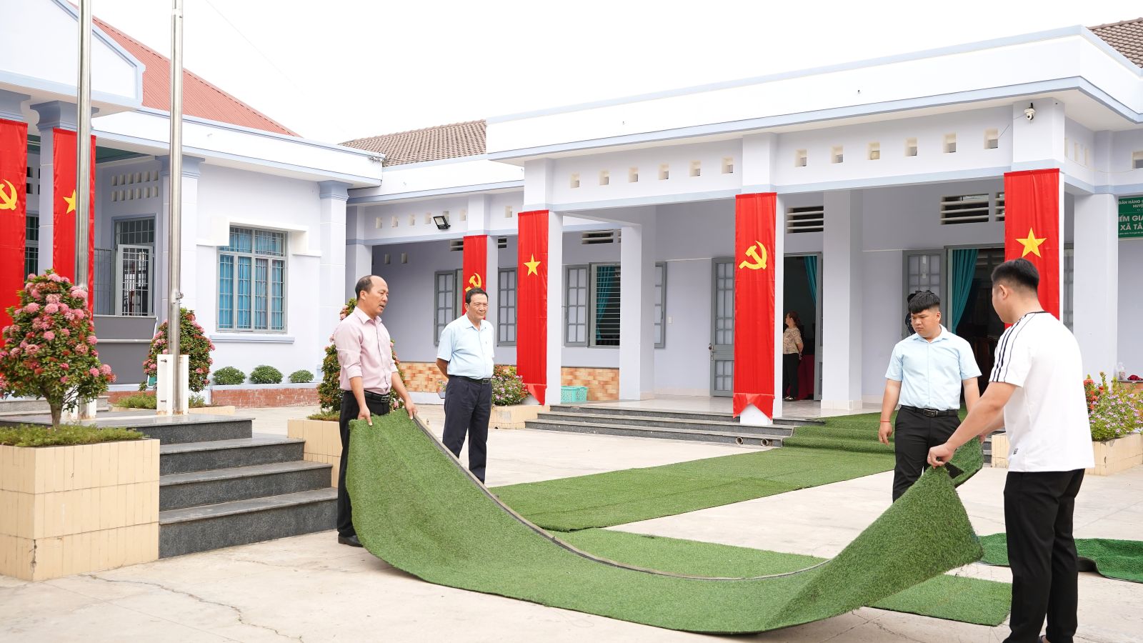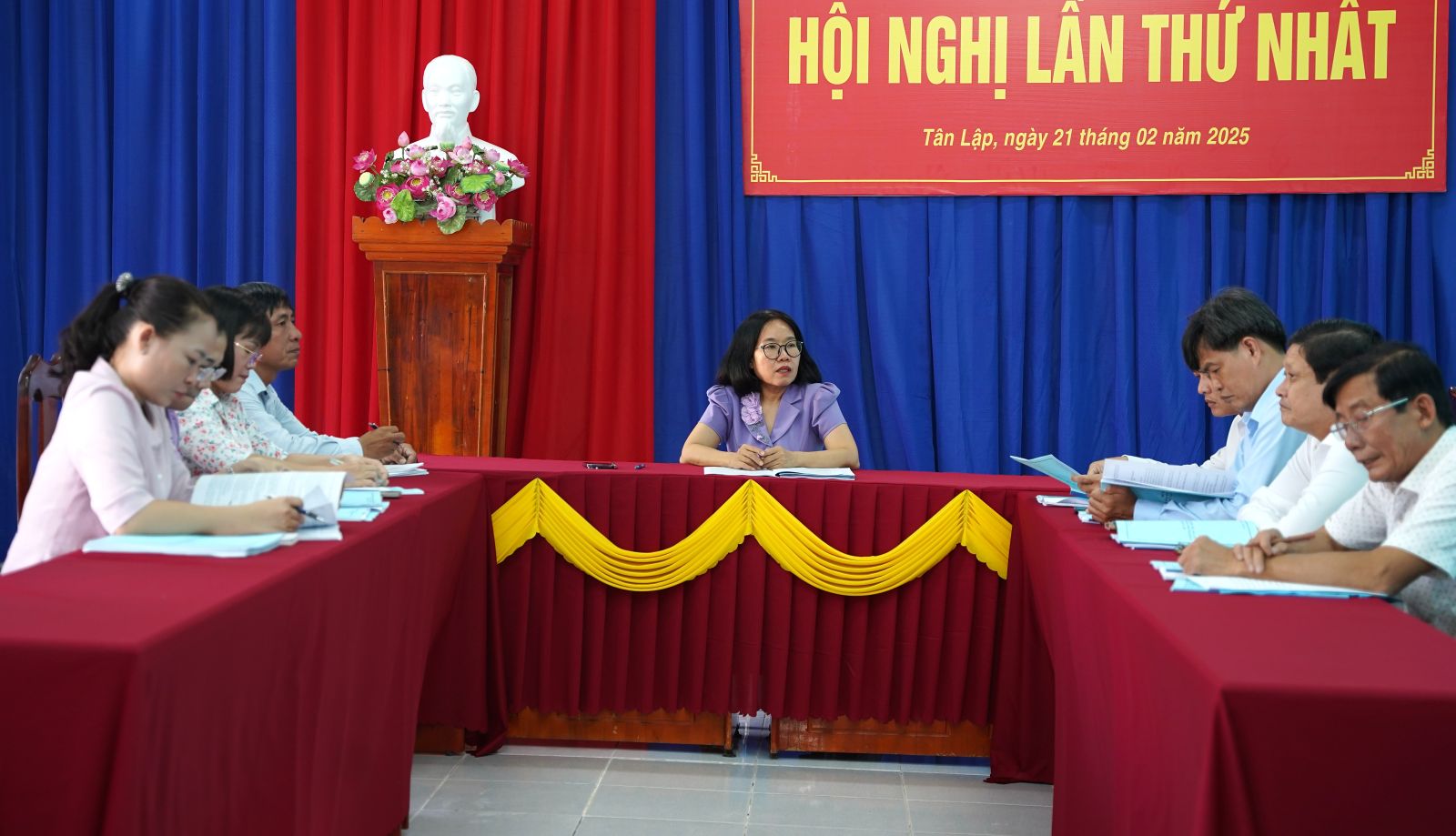 Tổ chỉ đạo đại hội điểm của tỉnh đã kiểm tra thực tế công tác trang trí, khánh tiết, nghi thức chào cờ, hát Quốc ca, Quốc tế ca và nghe lãnh đạo Đảng uỷ xã Tân Lập báo cáo công tác chuẩn bị tổ chức Đại hội của Đảng bộ xã Tân Lập.