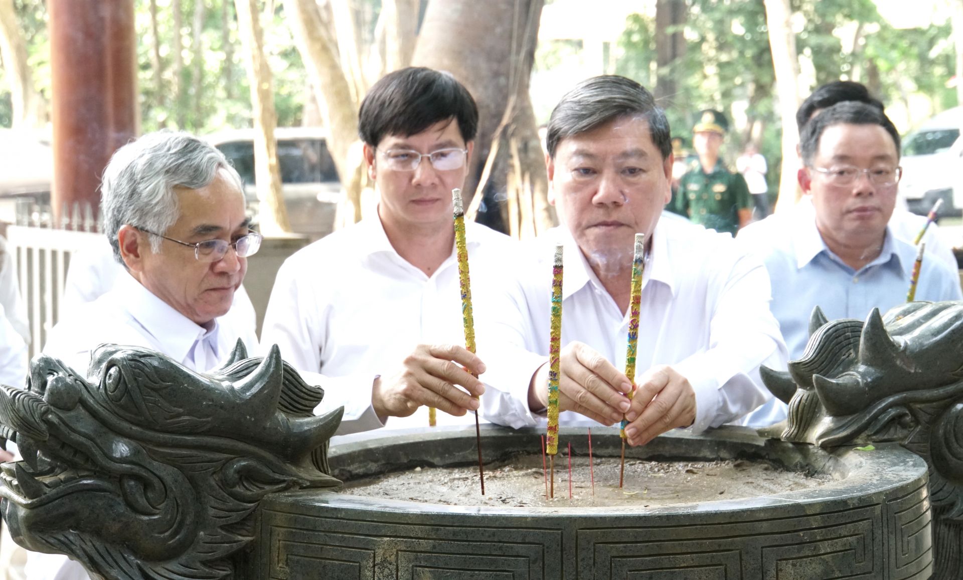 Chủ nhiệm UBKT Trung ương Trần Cẩm Tú dâng hương tại Nhà bia Di tích lịch sử Ban Kiểm tra Trung ương Cục miền Nam.