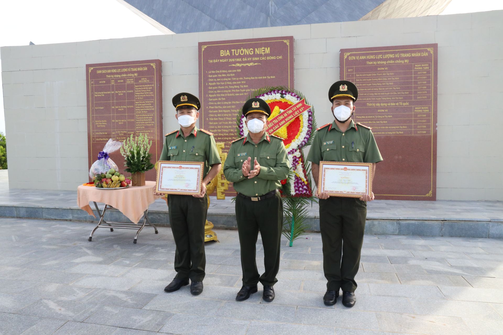 Đại diện BGĐ Công an tỉnh trao bằng khen cho tập thể, cá nhân có thành tích xuất sắc.