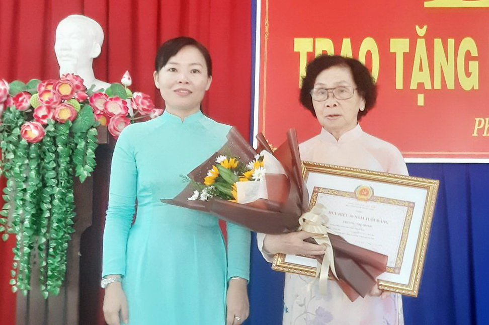 Sáng 14.12, Đảng ủy phường 2, Thành phố Tây Ninh tổ chức lễ trao tặng huy hiệu 50 năm tuổi đảng cho đảng viên Trương Thị Trinh. Đến dự và trao huy hiệu có Phó Bí thư Thường trực Thành ủy Nguyễn Thị Hồng Loan.