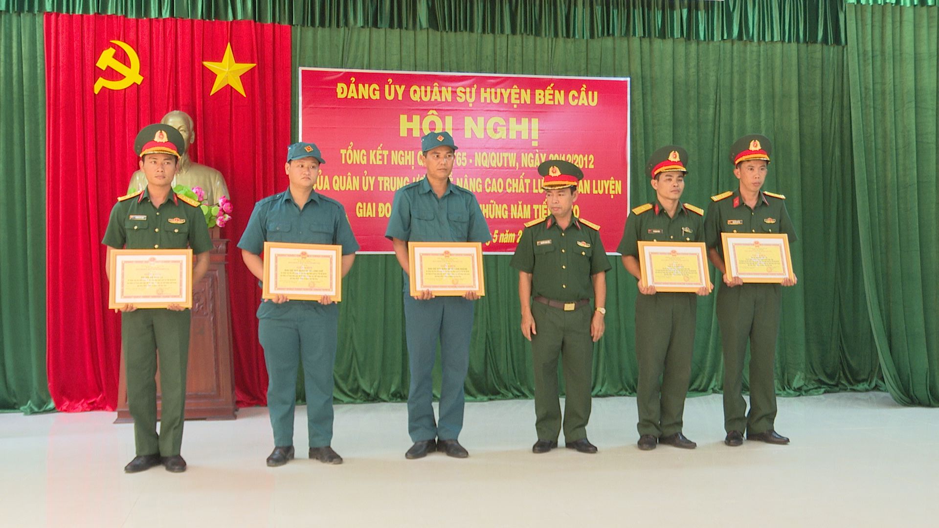 Trong 10 năm thực hiện Nghị quyết số 765-NQ/QUTW ngày 20.12.2012 của Quân ủy Trung ương về nâng cao chất lượng huấn luyện giai đoạn 2013 -2020 và những năm tiếp theo, lực lượng vũ trang huyện Bến Cầu thực hiện công tác quân sự - quốc phòng, công tác huấn luyện đổi mới về nội dung, sát với yêu cầu, nhiệm vụ và tình hình thực tiễn của địa phương, đơn vị; trong huấn luyện gắn với xây dựng cơ sở chính trị địa phương vững mạnh, xây dựng nền nếp chính quy; xây dựng đơn vị vững mạnh toàn diện. Kết quả huấn luyện các nội dung 100% đạt yêu cầu. Trong đó, 85% đạt khá, giỏi trở lên.