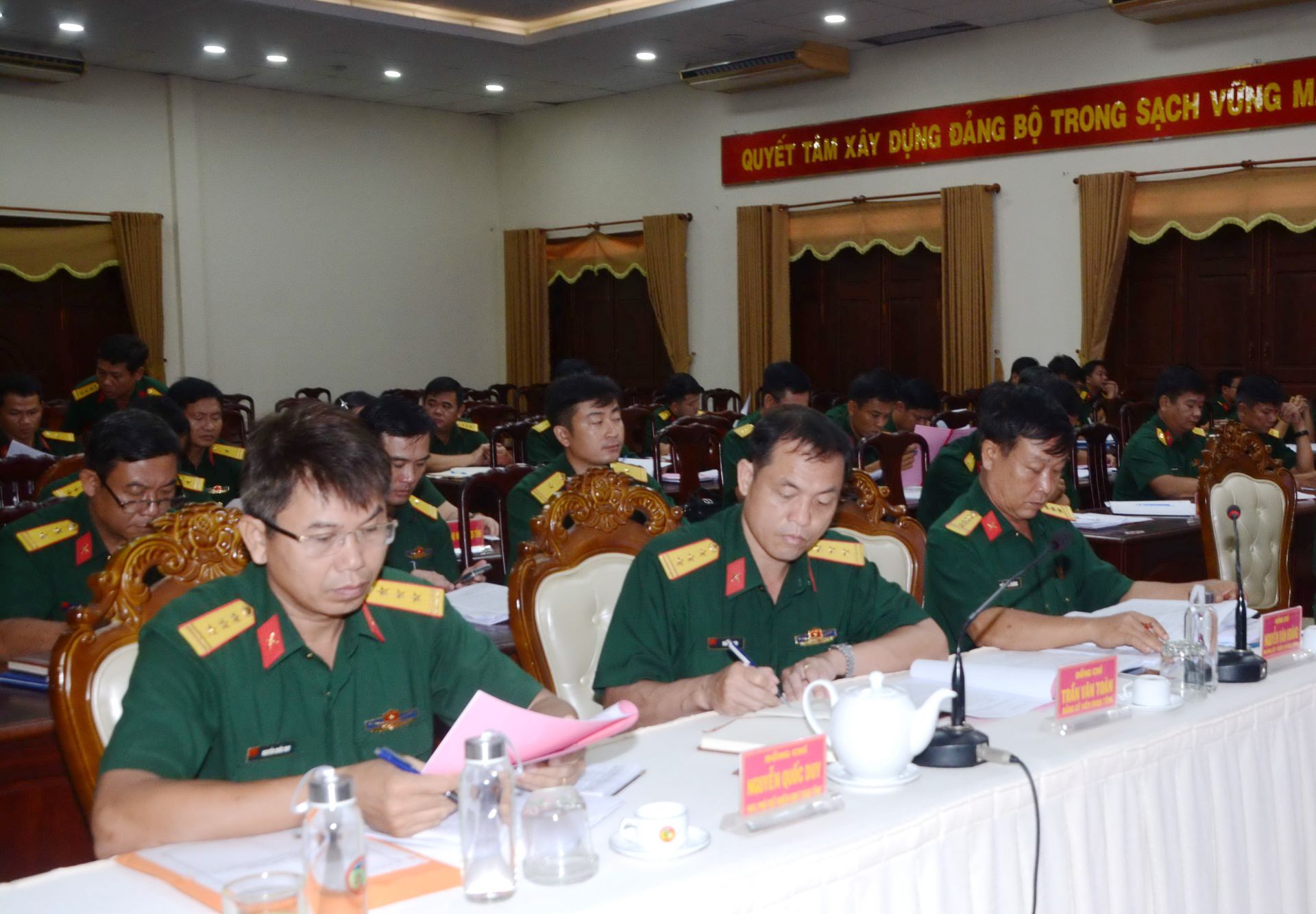 Đại tá Nguyễn Thanh Phong- Phó Bí thư Thường trực Đảng uỷ, Chính uỷ Bộ CHQS tỉnh chủ trì hội nghị. Tham dự có các đồng chí trong Đảng uỷ Bộ CHQS tỉnh, thủ trưởng các cơ quan, đơn vị, địa phương trong LLVT tỉnh.