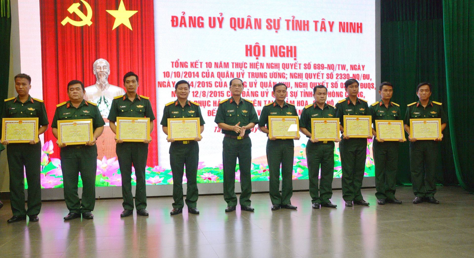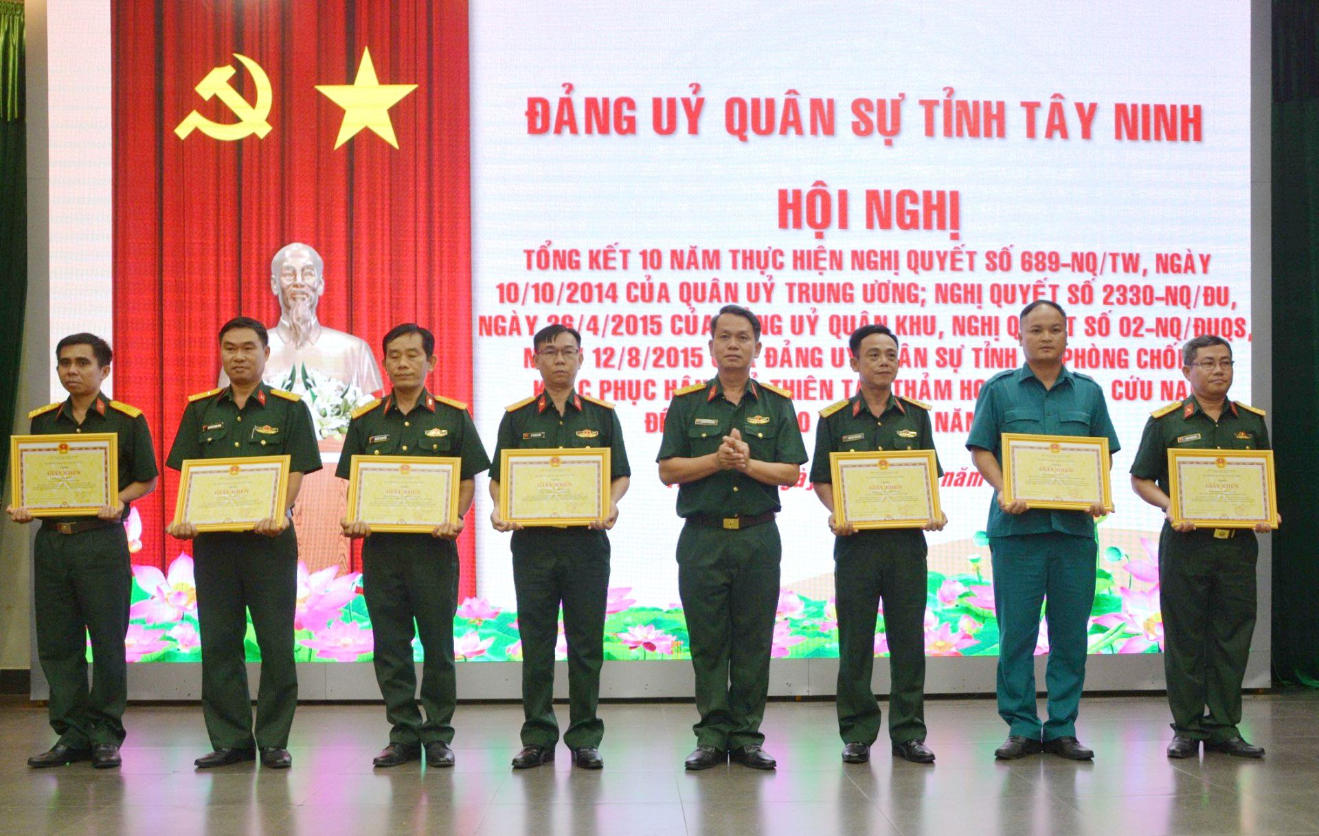 Thủ trưởng Bộ CHQS tỉnh Tây Ninh khen thưởng các tập thể có thành tích xuất sắc trong thực hiện Nghị quyết 689 của Quân uỷ Trung ương
