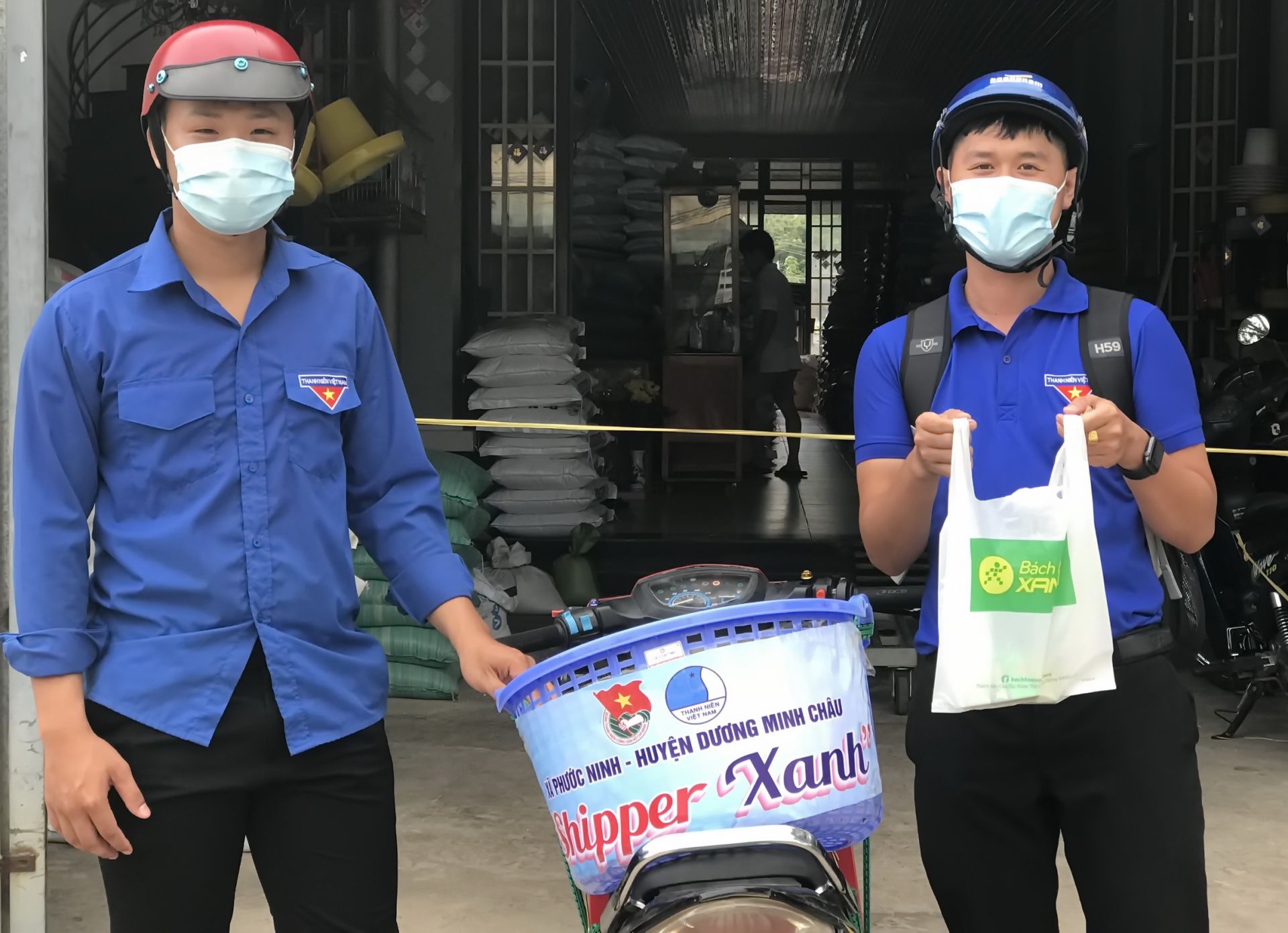 Anh Huỳnh Trung Quốc đi chợ giúp dân với mô hình shipper xanh.