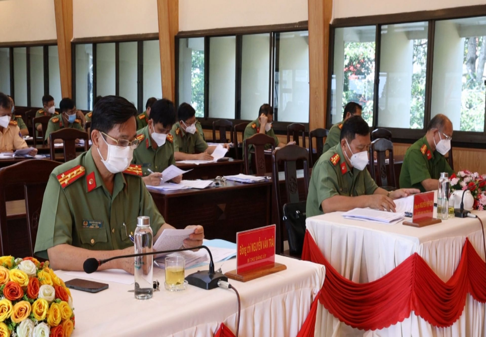 Đại tá Nguyễn Văn Trãi- Bí thư Đảng ủy Công an tỉnh đề nghị toàn lực lượng Công an tỉnh phấn đấu giữ vững thành quả đạt được, chú trọng xây dựng lực lượng, xây dựng Đảng; các chi đảng bộ cở sở căn cứ vào chương trình Nghị quyết thực hiện các nhiệm vụ trọng tâm; tiếp tục thực hiện hiệu quả 2 nhiệm vụ quan trọng xuyên suốt vừa bảo đảm công tác phòng, chống dịch Covid -19 vừa bảo đảm ổn định tình hình an ninh chính trị, trật tự an toàn xã hội. Chủ động nắm tình hình triển khai các giải pháp ổn định an ninh biên giới, an ninh trong tôn giáo, dân tộc,… quản lý chặt người nước ngoài và hoạt động xuất, nhập cảnh trái phép qua biên giới. Tiếp tục đẩy mạnh công tác đấu tranh, trấn áp các loại tội phạm.