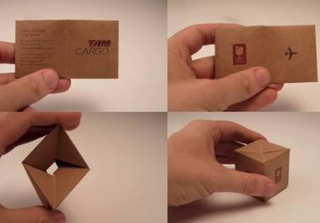 Chiếc danh thiếp có thể gập thành một khối hình hộp, biểu trưng cho những kiện hàng được vận chuyển qua đường hàng không. Đây là ý tưởng của công ty Tam Cargo đến từ Brazil.