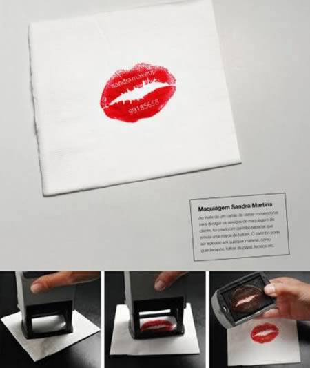 Thay vì sử dụng những chiếc danh thiếp truyền thống, bạn có thể nghĩ đến một con dấu hình đôi môi gợi cảm như thế này. Lựa chọn rất hợp lý cho các công ty mỹ phẩm.