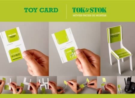 Công ty Tok&Stok biến mẫu danh thiếp của mình thành món đồ có thể giải trí lúc nhàn rỗi. Chiếc danh thiếp làm bằng nhựa cứng và được cắt sẵn thành nhiều hình khối. Bạn có thể tháo rời rồi lắp thành các đồ vật khác nhau.