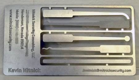 Công ty bảo mật Mitrick sắm cho nhân viên của mình mẫu danh thiếp kèm luôn cả bộ dụng cụ mở khóa trong trường hợp kẹt khóa. Thật tiện dụng quá đi.