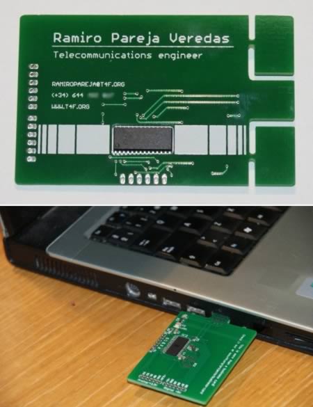Ramiro Pareja Veredas, nhân viên một công ty công nghệ, sở hữu chiếc danh thiếp cũng đậm nét công nghệ. Danh thiếp kiêm luôn thẻ USB.