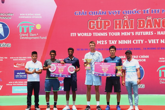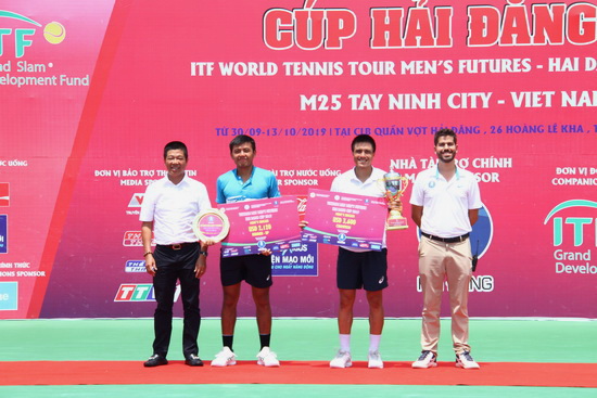 Trao giải nhất, nhì cho các tay vợt giành chiến thắng ở nội dung đôi nam.