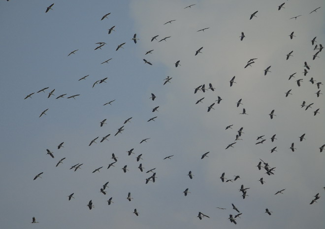 Hôm ấy lại là ngày không có trời xanh mây trắng. Không khí âm ui. Ngước lên ngược sáng nên chỉ nhận ra bầy chim có màu đen, cánh giang rộng vẻ an nhiên và thư thái lắm! Chúng bay tít trên những tầng cao, có lúc chỉ giang cánh lượn mà thôi, như những cánh diều. Gặp một bác nông dân đi qua, vội níu lại hỏi thăm:- Chim gì đây bác? Bác bảo, cũng chẳng biết chim gì, nhưng chúng bay về đây cũng đã cả tháng nay…