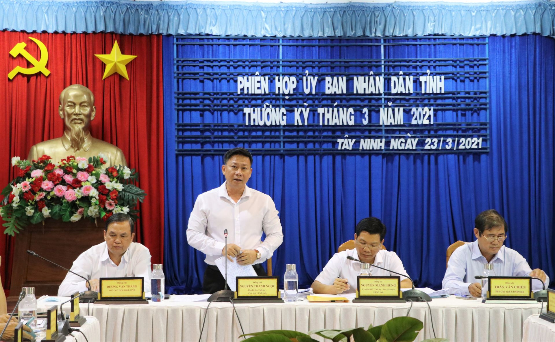 Ngày 23.3, UBND tỉnh tổ chức phiên họp thường kỳ tháng 3, cho ý kiến về một số nội dung quan trọng. Ông Nguyễn Thanh Ngọc- Chủ tịch UBND tỉnh và các Phó Chủ tịch UBND tỉnh Nguyễn Mạnh Hùng, Trần Văn Chiến, Dương Văn Thắng đồng chủ trì phiên họp.