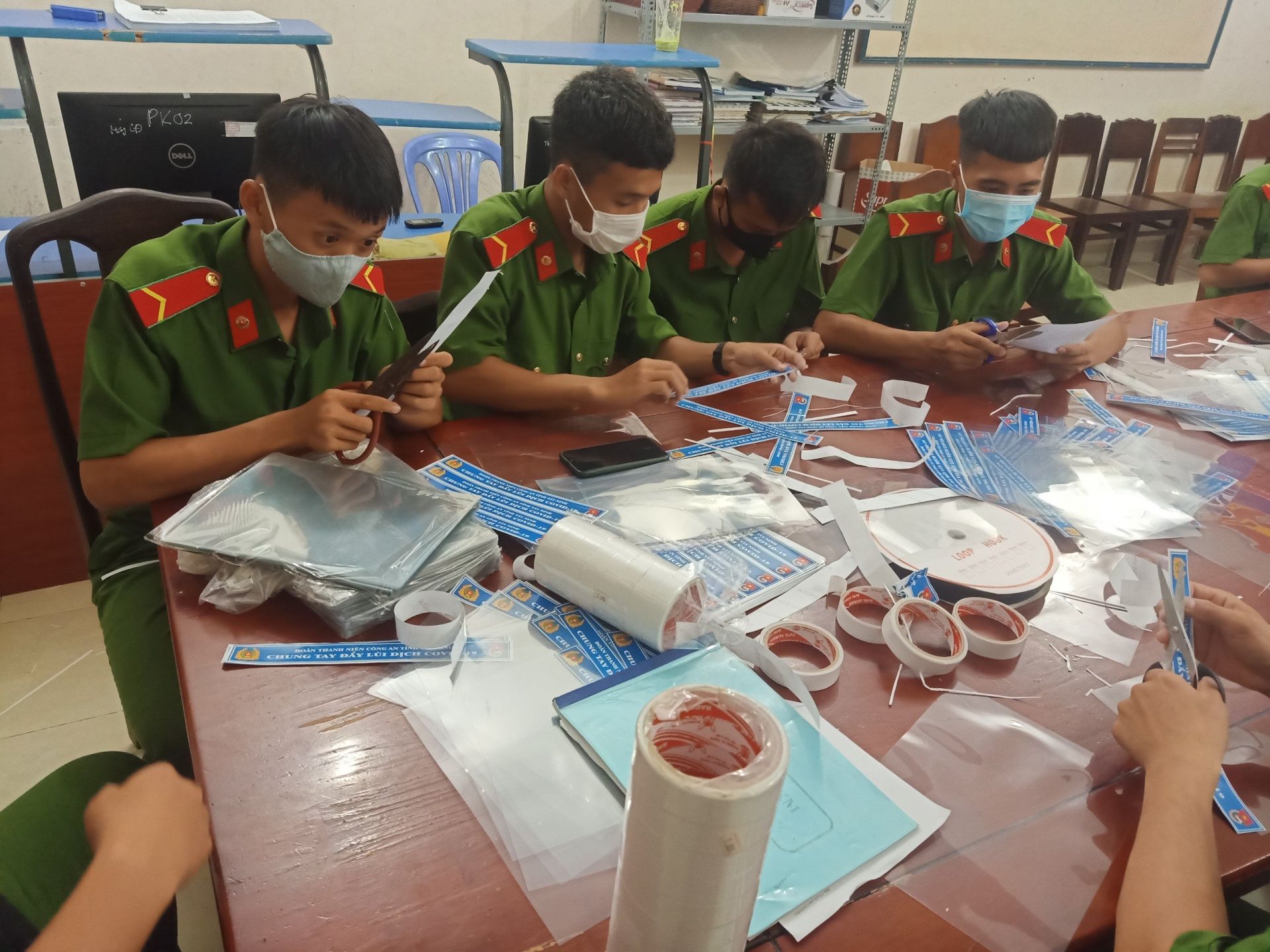Đoàn viên Công an Tây Ninh nỗ lực làm nón chống giọt bắn.