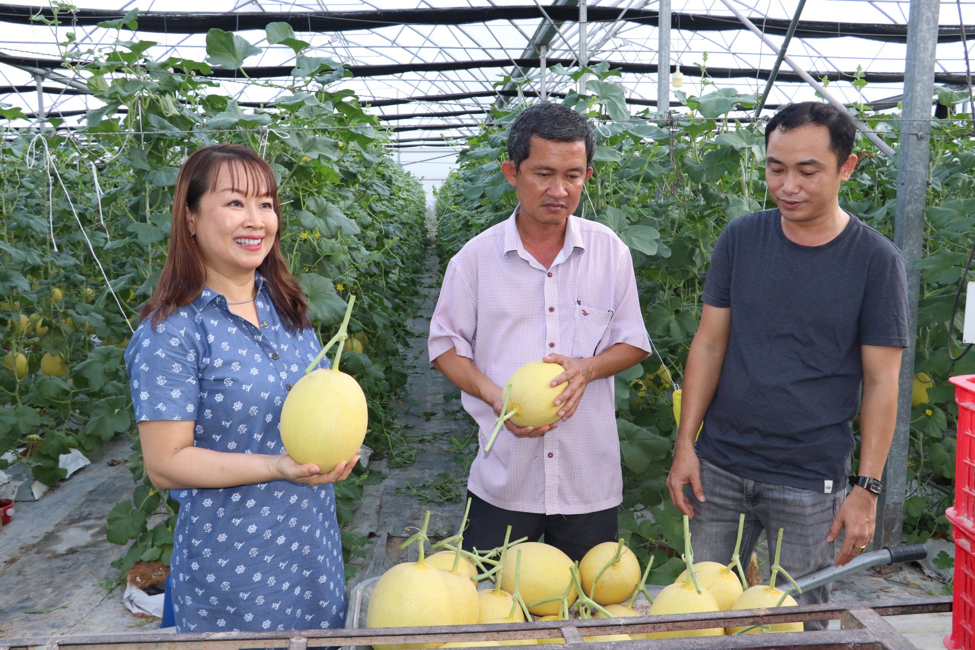 Thu hoạch dưa lưới.