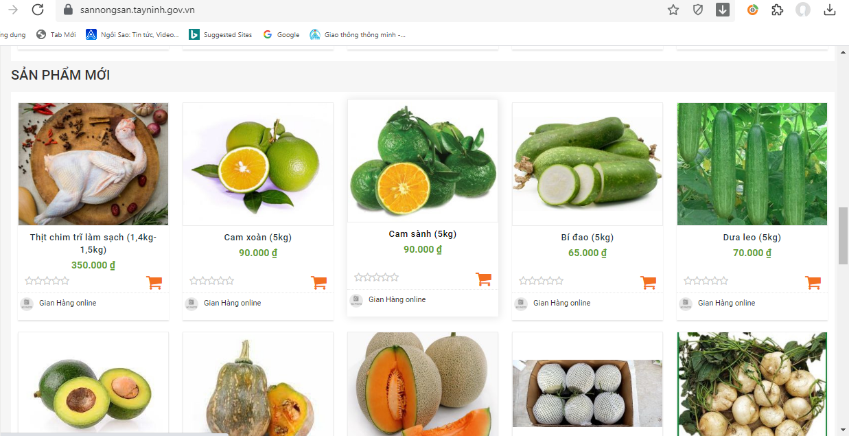 Các mặt hàng trên sàn nông sản điện tử https://sannongsan.tavninh.gov.vn
