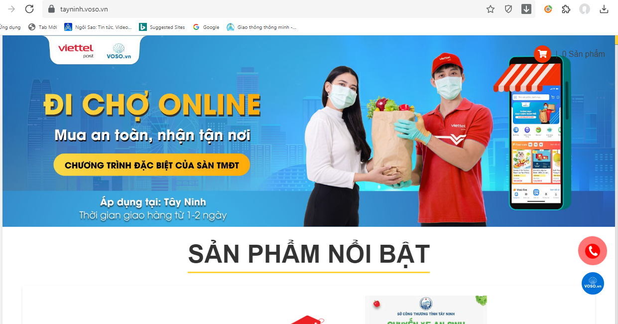 Giao diện của sàn TMĐT https://tayninh.voso.vn/