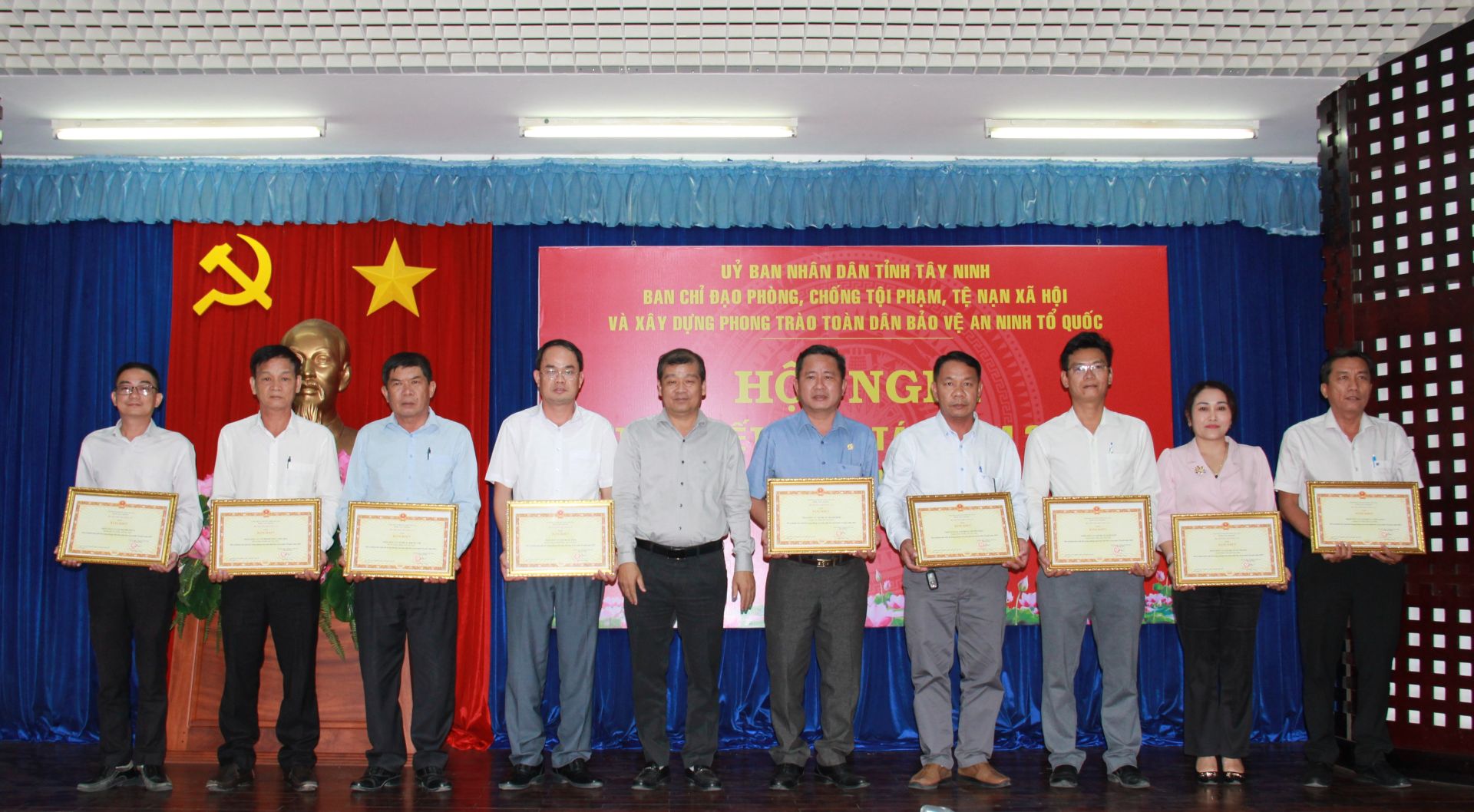 Tại hội nghị, có 9 tập thể được Bộ trưởng Bộ Công an tặng bằng khen đã có thành tích xuất sắc trong phong trào Toàn dân bảo vệ ANTQ năm 2023. UBND tỉnh trao giấy công nhận cho các cơ quan, doanh nghiệp, cơ sở giáo dục đạt tiêu chuẩn “An toàn về an ninh trật tự” năm 2023.