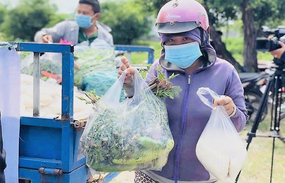 "Gian hàng 0 đồng" lưu động giúp người dân yên tâm về nhu cầu thực phẩm hàng ngày.