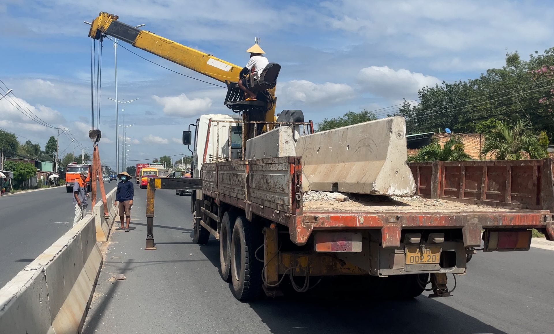 Thi công giải phân cách đường 784.