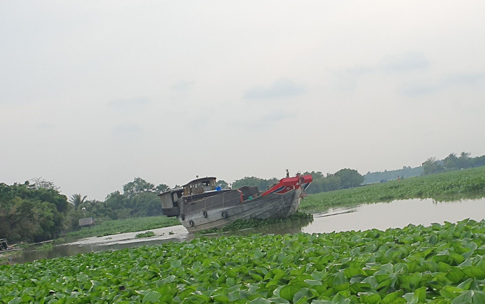 Những ngày gần đây, lục bình xuất hiện dày đặc, ùn ứ trên sông Vàm Cỏ Đông, đoạn qua địa phận hai xã Trí Bình và Thành Long, huyện Châu Thành khiến việc lưu thông của các phương tiện đường thuỷ qua khu vực này gặp nhiều khó khăn.
