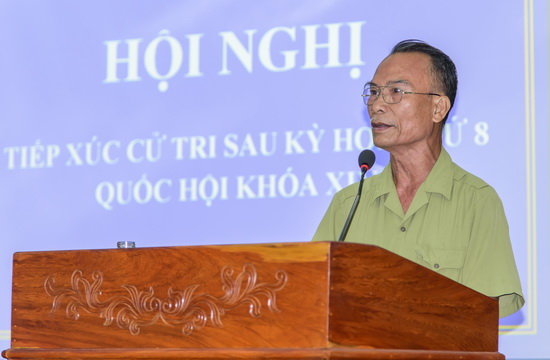 Tại buổi tiếp xúc, cử tri huyện Tân Châu bày tỏ sự phấn khởi trước những kết quả kỳ họp thứ 8 Quốc hội khóa XIV đã đạt được và có một số ý kiến, kiến nghị như: nên bỏ thủ tục chuyển viện đối với đối tượng cựu chiến binh khi khám chữa bệnh bằng bảo hiểm y tế; cần tạo điều kiện hỗ trợ về đất ở, nhà ở, hỗ trợ tiền điện để cựu chiến binh có hoàn cảnh cảnh khó khăn vươn lên trong cuộc sống.
