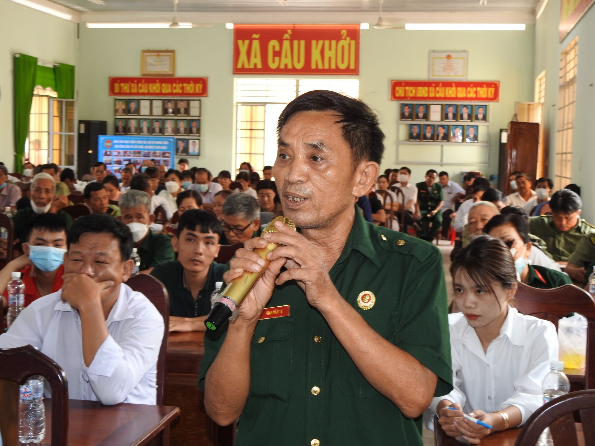 Tại hội nghị, ông Phan Văn Tý, cử tri xã Cầu Khởi thắc mắc vấn đề thủ tục hồ sơ về chế độ, chính sách đối với đối tượng tham gia chiến tranh bảo vệ Tổ quốc, làm nhiệm vụ quốc tế ở Campuchia sau ngày 30.4.1975. Đại biểu Hoàng Thị Thanh Thuý phát biểu ghi nhận ý kiến của ông Tý, cho biết sẽ sớm xác minh làm rõ vấn đề cử tri nêu.