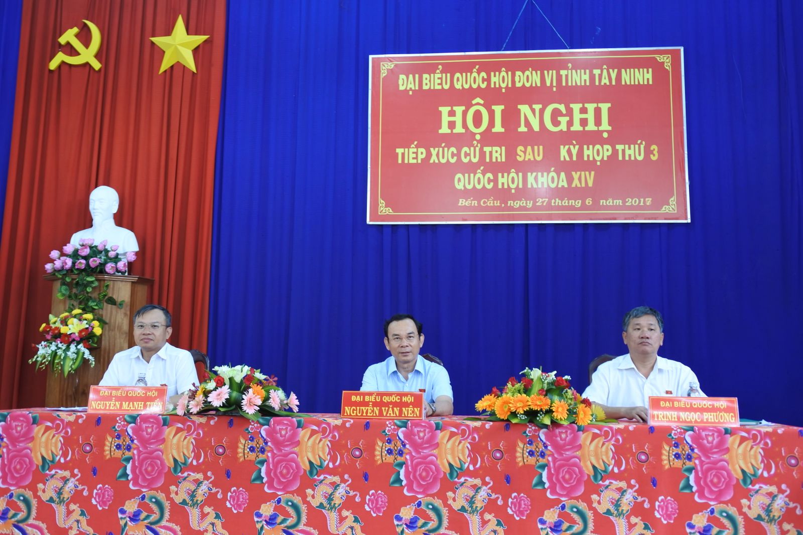 * Chiều cùng ngày, các ĐBQH: Nguyễn Văn Nên- Bí thư Trung ương Đảng, Chánh văn phòng Trung ương Đảng; Nguyễn Mạnh Tiến- Phó Chủ nhiệm Ủy ban Đối ngoại Quốc hội; Trịnh Ngọc Phương- Bí thư Huyện ủy Tân Biên đã gặp gỡ với cử tri huyện Bến Cầu.