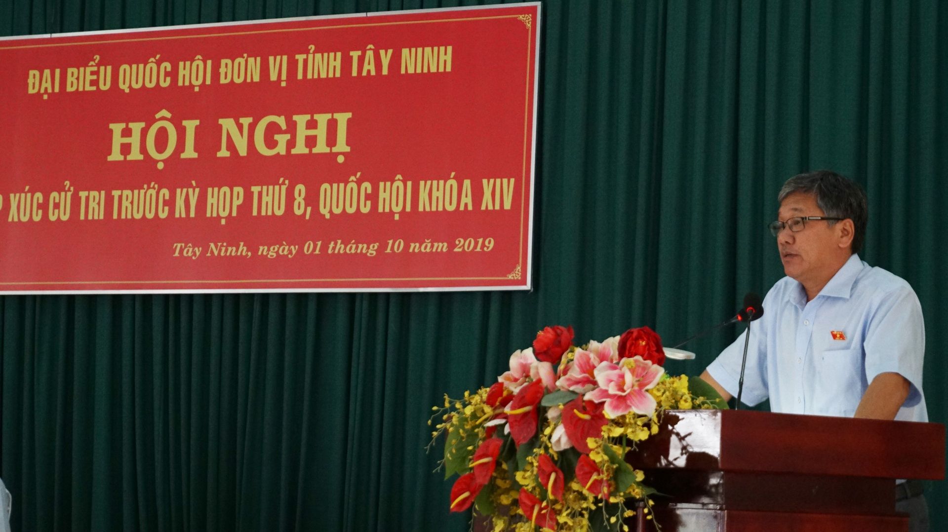 Sáng 1.10, tại Hội trường Sở GD&ĐT, đoàn ĐBQH đơn vị tỉnh Tây Ninh đã có buổi tiếp xúc với trên 250 cử tri là lãnh đạo, cán bộ, công chức, người lao động các sở, ngành, đoàn thể tỉnh, doanh nghiệp và lực lượng vũ trang tỉnh.