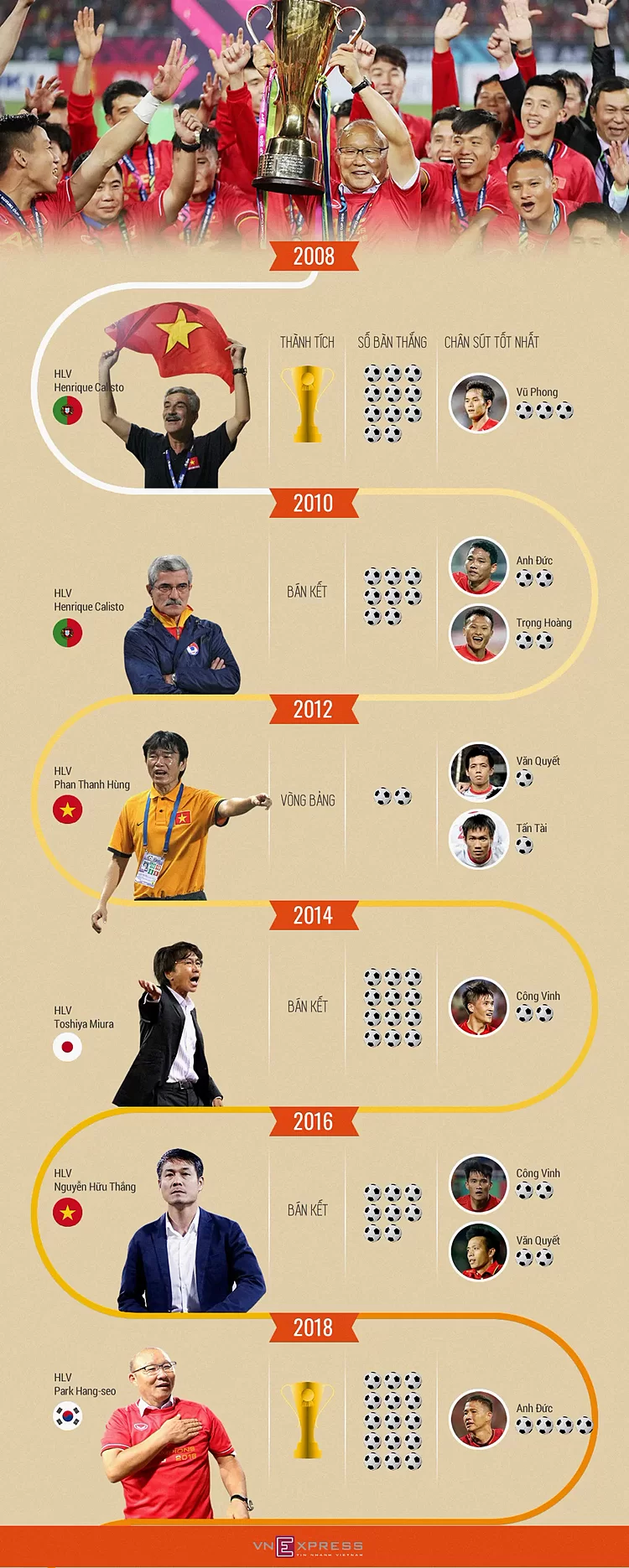 Thành tích của các đời HLV đội tuyển Việt Nam tại AFF Cup. Đồ họa: Tiến Thành.