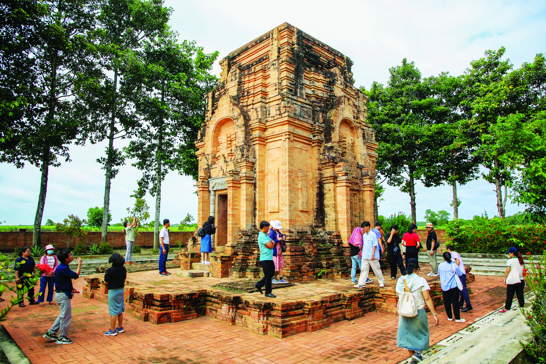Du khách tham quan di tích kiến trúc nghệ thuật tháp Chót Mạt, huyện Tân Biên.