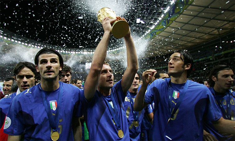 De Rossi (giữa) nâng cao cup vàng khi cùng Italy vô địch thế giới năm 2006. Ảnh: FIFA.