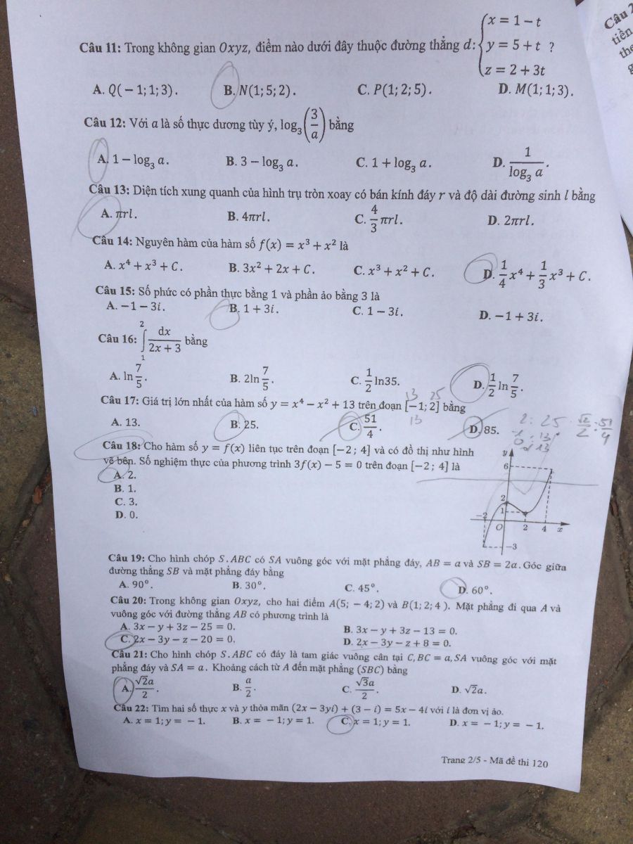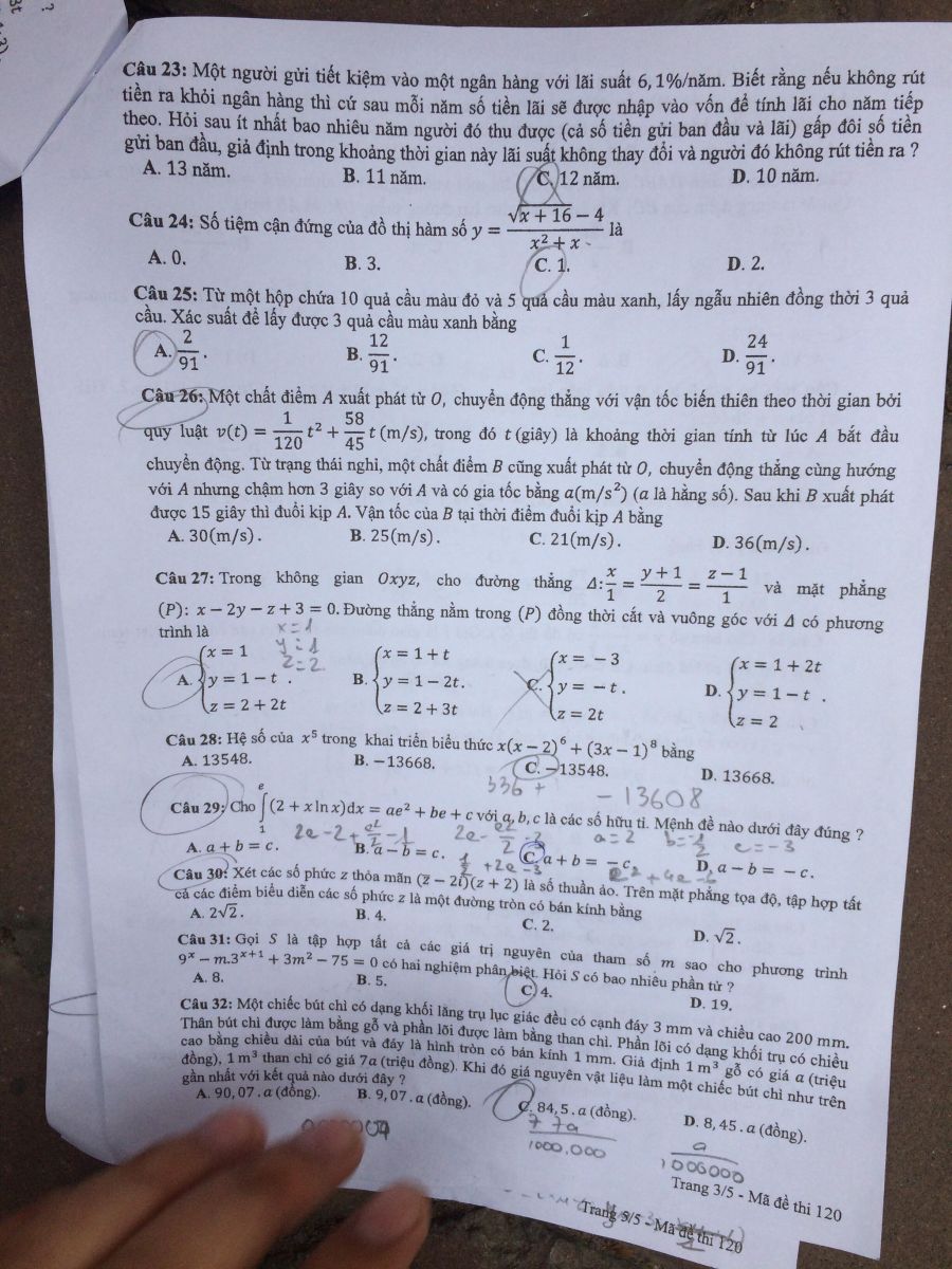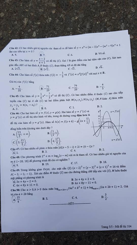 Đề thi môn Toán năm nay gồm 24 mã đề. Dưới đây là đề thi môn Toán THPT Quốc gia mã đề 120: