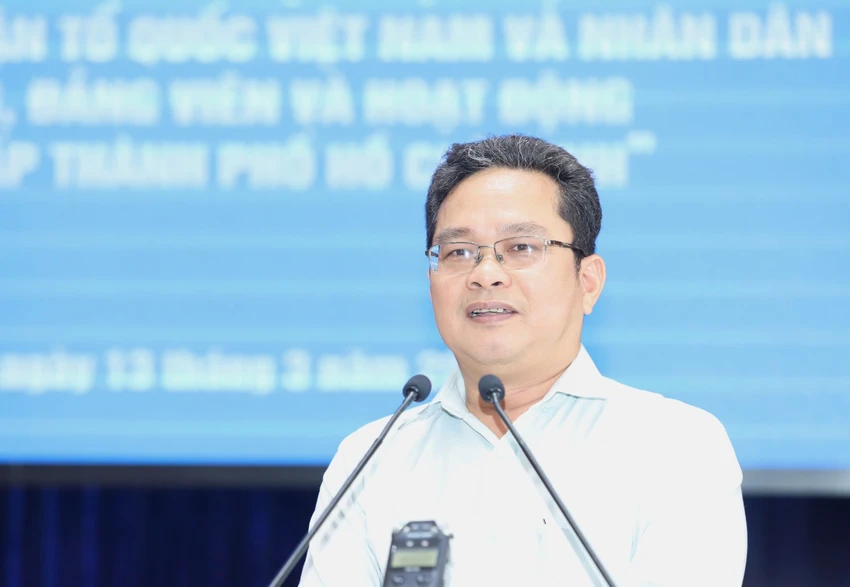 Phó Chủ tịch Ủy ban MTTQ Việt Nam TP.HCM Phạm Minh Tuấn phát biểu kết luận. Ảnh: BẢO PHƯƠNG