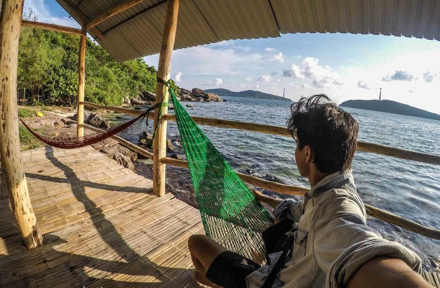 Bạn có thể nằm ở những võng căng sát biển cả ngày, tận hưởng hương vị biển.