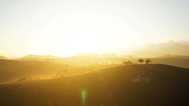 Đầu buổi sáng, các nhiếp ảnh gia sẽ phải dậy sớm, leo lên “bể nước thần thánh” nơi chụp bình minh đồi chè Mộc Châu nổi tiếng – Vị trí này ở ngay đối diện cổng Công ty chè Mộc Châu.