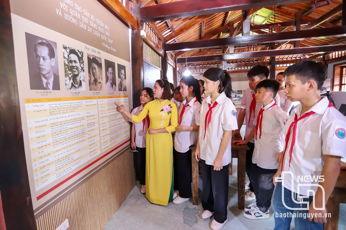 Đây cũng sẽ là nơi giáo dục truyền thống cho thế hệ trẻ. Trong ảnh, thầy và trò trường Tiểu học và THCS Tân Thái (Đại Từ) thăm quan di tích.