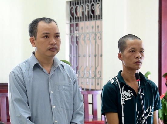 Hai bị cáo tại phiên tòa sơ thẩm.