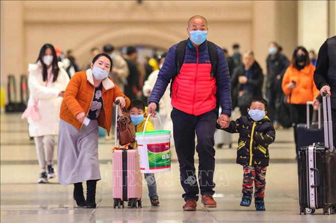 Hành khách đeo khẩu trang đề phòng lây nhiễm virus corona tại nhà ga Hankou ở Vũ Hán, Trung Quốc ngày 21/1/2020. Ảnh: AFP/TTXVN