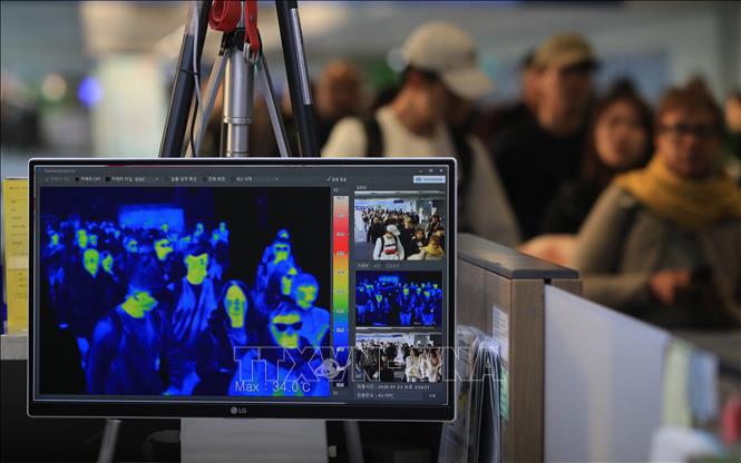 Thiết bị cảm biến nhiệt được sử dụng để kiểm tra thân nhiệt của hành khách tại sân bay quốc tế Incheon, Hàn Quốc ngày 23/1/2020. Ảnh: Yonhap/TTXVN