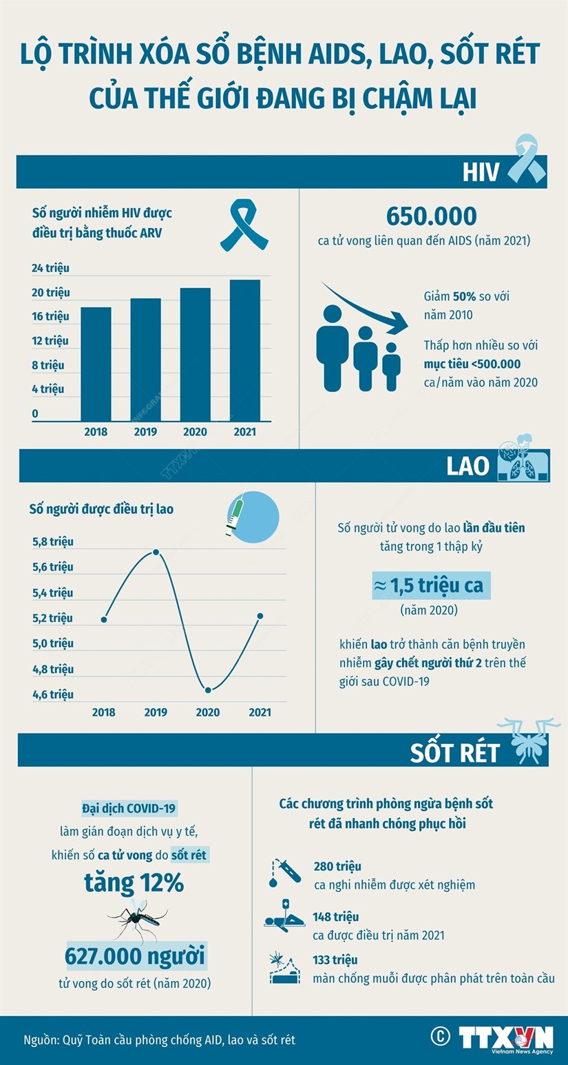 Đại dịch COVID-19 đã tác động nghiêm trọng đến những nỗ lực xóa bỏ hoàn toàn bệnh AIDS, lao và sốt rét trên thế giới, khiến nỗ lực chống lại những căn bệnh này lần đầu tiên sụt giảm./.