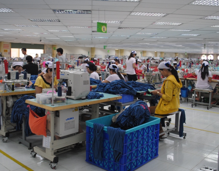 Công nhân nghề may mặc trong một khu công nghiệp.