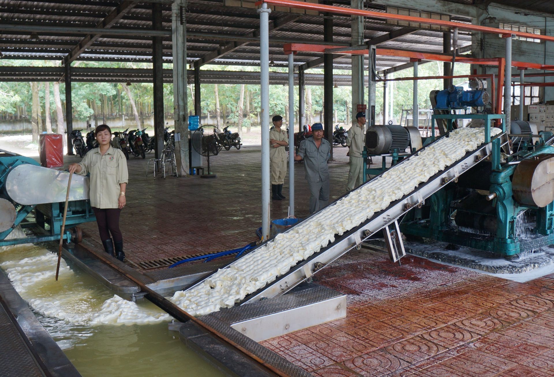 Chế biến mủ cao su tại một nhà máy.